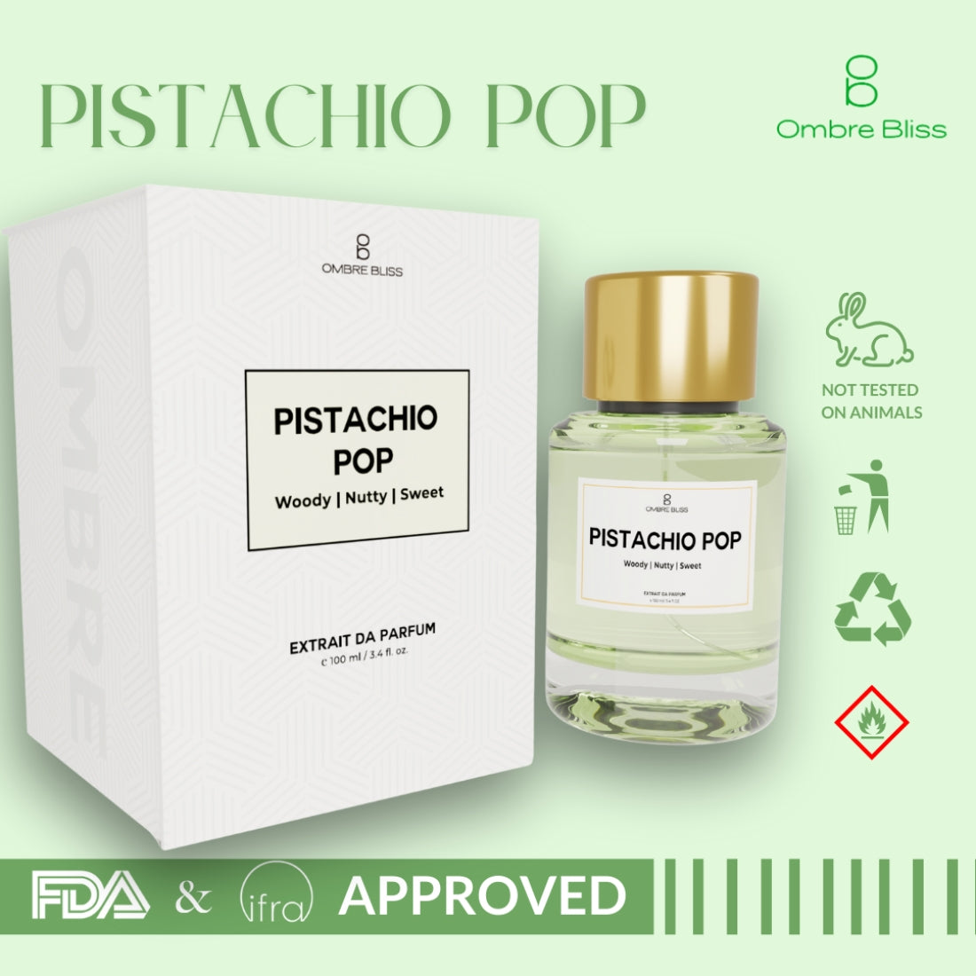 Secure PaymentPistachio Pop is a luxurious Extrait de Parfum (EDP) that's phthalate-free, paraben-free, and cruelty-free. With a 20% fragrance concentration, it offers a long-lasting scent experience that's safe, ethical, and indulgent.